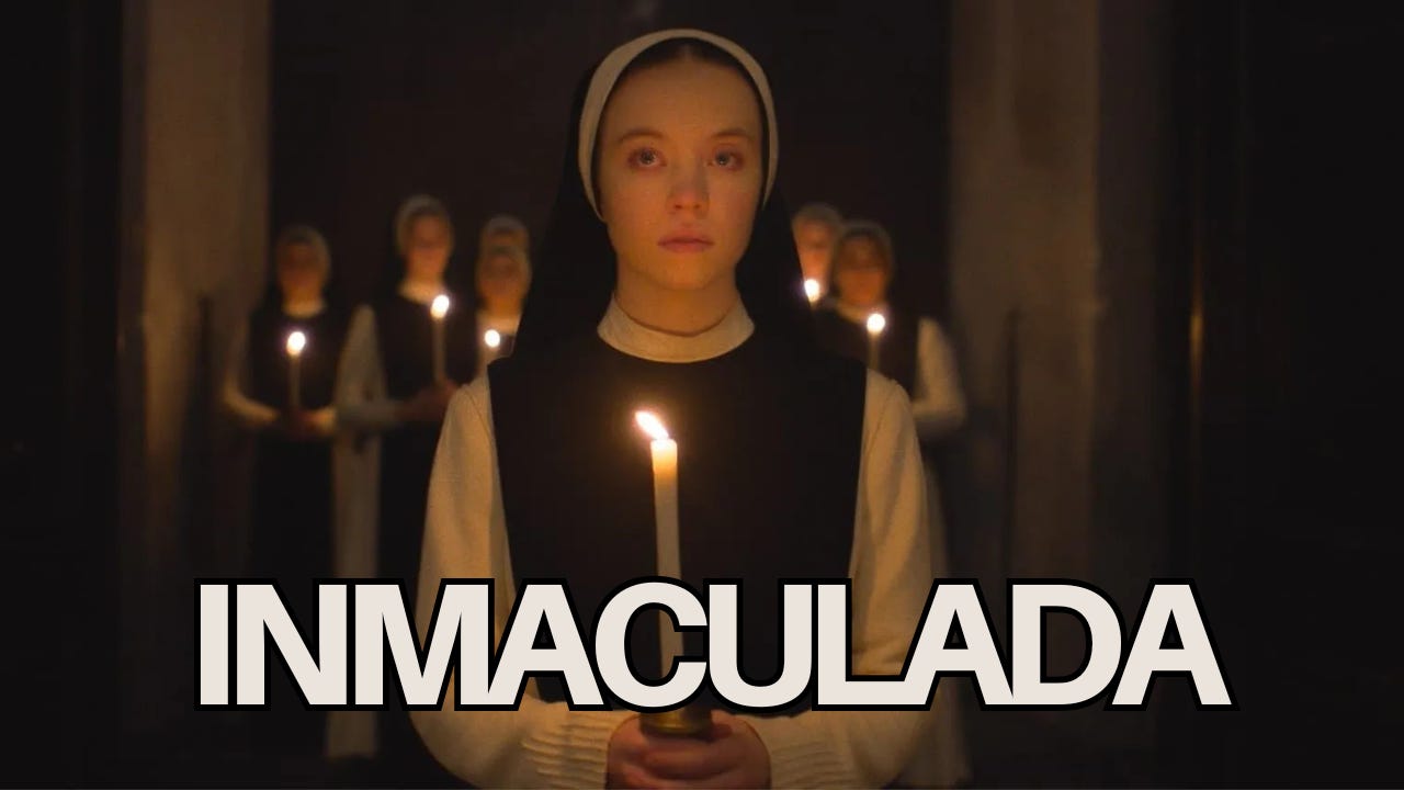 Hace unos días, sin saber bien a bien qué ver, estuve dando vueltas en las plataformas de streaming que tengo, y me topé en Prime con Inmaculada (Michael Mohan, 2024).